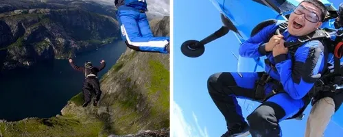 Skydiving and BASE jumping are different because in BASE jumping you jump off of a fixed object like a building or a mountain instead of an aircraft. BASE jumpers jump from a lot lower heights so there is a lot less time to pull your parachute.